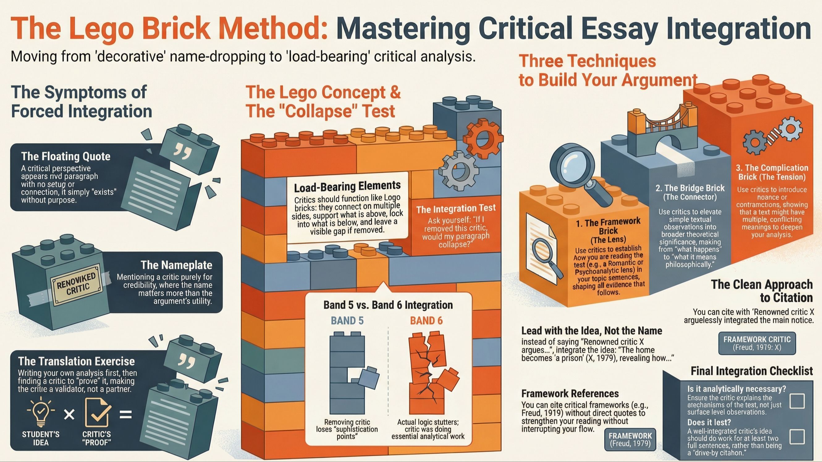 Markers can spot this instantly. The critic appears, says something vaguely relevant, then disappears. No connection to your argument. No integration with textual evidence. Just a name-drop that screams "I needed to tick a rubric box."